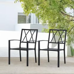 2-Piece Stackable Metal Patio Chairs Set, Outdoor Dining Chairs with Armrests , Cross Back , Black$40West Covina, CA