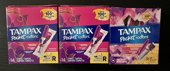 Tampax Pocket Radiant Compact Tampons, Unscented, Regular, 14 Count(3 Boxes)$14Livonia, MI