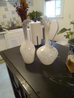 Vase And Matching Pitcher White Blown Glass$50Columbus, GA