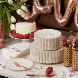 (121212-3) By Madee HEAVYWEIGHT 175Pc Easter Plates and Napkins Set | Fancy Disposable Dinnerware Set Ivory and Scalloped Disposable Plates with Rose$25Haines City, FL