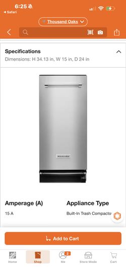 NEVER USED KITCHEN AID 15”TRASH COMPACTOR $1,199Santa Rosa Va, CA