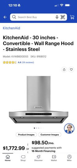 NEW KITCHEN AID 30” WALL RANGE HOOD WITH A 2 YEAR EXTENDED WARRANTY FULLY TRANSFERABLE 1/25/26$899Thousand Oaks, CA