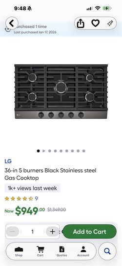 NEW IN BOX LG 36”GAS 🤗BLACK STAINLESS 🤗 COOKTOP WITH A 3 YEAR EXTENDED WARRANTY FULLY TRANSFERABLE. 1/17/26$599Santa Rosa Va, CA