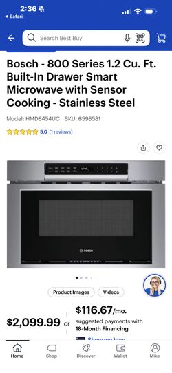 NEW IN BOX. BOSCH 800 Series 24” DRAWER MICROWAVE WITH A 3 YEAR EXTENDED WARRANTY FULLY TRANSFERABLE INCLUDED 12/29/25$1,499Thousand Oaks, CA