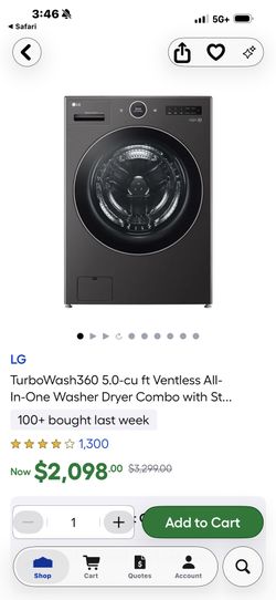 NEW LG 5.0 cuft ALL IN ONE WASHER AND DRYER. 120 volt ELECTRIC. VENTLESS. PLUS A 3 YEAR EXTENDED WARRANTY FULLY TRANSFERABLE 1/10/26$1,099Thousand Oaks, CA