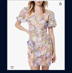 Women's 3D Floral Embroidery Short Dress V Neck Puff Sleeve Sheer Mesh Lace Slim Party Cocktail Mini Dress$30Whittier, CA