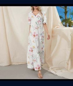 Basic Casual DresDress Spring Summer Whit V-Neck Casual Beach Dresses Elegant Vintage Dress with Flower Print$25Whittier, CA