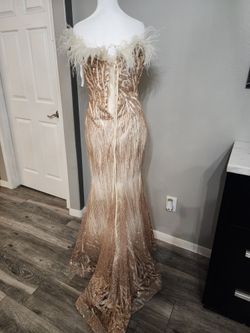 Formal elegant Sequin Gold dress with split and feathers Very beautiful dress$300Humble, TX