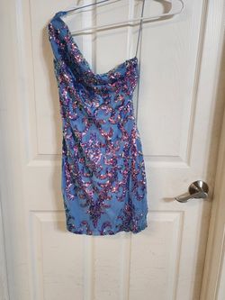 Formal short junior prom dress sequin blue and gold$25Humble, TX