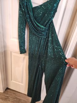 One sleeve Jumpsuit sequin Emerald green size m$50Humble, TX
