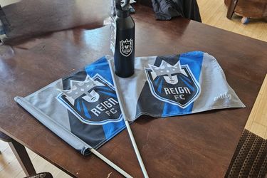 Two Reign FC flags and a matching water bottle.$20Port Ludlow, WA