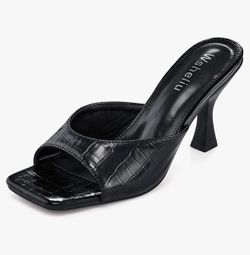 Women's Square Toe heels Comfy Kitten Heels Mules Sandals Open Peep Toe Dress Pumps Slide Shoes Blac$40Dearborn Heights, MI