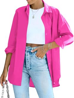 Womens Button Down Collared Shirts Long Sleeve Blouses Oversized Causal Tops with Pocket$20Dearborn Heights, MI