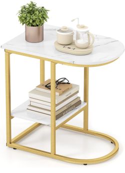 C Shaped End Table with Faux Marble Tabletop For Sale $32.00 50%+ OFF Retail $64.99 NEW IN BOX$32Phoenix, AZ