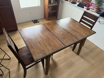 I’m selling a wooden table with two chairs. They are sturdy, durable, and in good condition. Dimensions are shown in the photo.$130Katy, TX