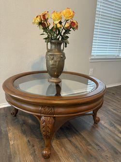 Antique Round Carved Coffee Table with Glass Top$100Houston, TX