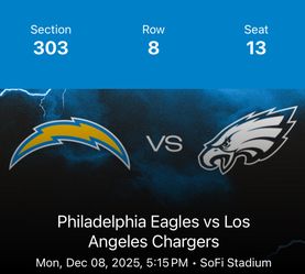 Chargers Vs Eagles$350Long Beach, CA