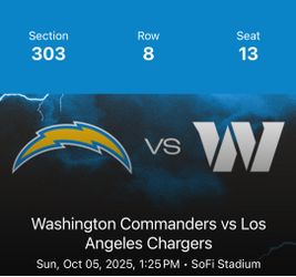 Chargers Vs Commanders $200Long Beach, CA