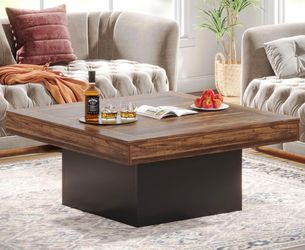 Tribesigns Coffee Table Square LED Coffee Table Engineered Wood Low Center Cocktail Tables for Living Room (Rustic Brown+Black $60Hesperia, CA