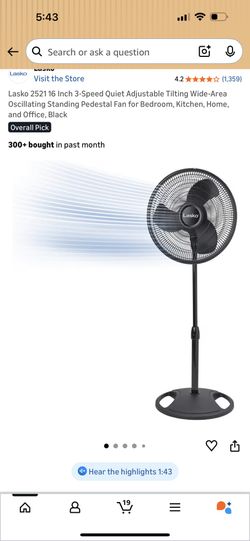Lasko 3-Speed Adjustable Oscillating Standing Pedestal Fan$10Bellevue, WA
