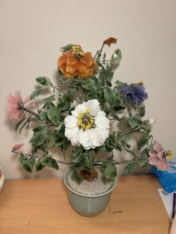 Vintage Jade Glass Bonsai Tree Multi Color Flower Rose Quartz Celadon Pot$80Chicago, IL