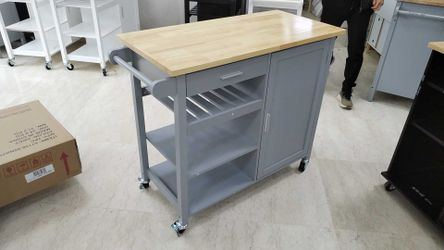 Kitchen Island Cart with Solid Wood Top, Mobile Carts with Storage Cabinet, Rolling Kitchen Table with Spice Rack, Towel Rack, and Drawer, Portable Is$70Chino, CA