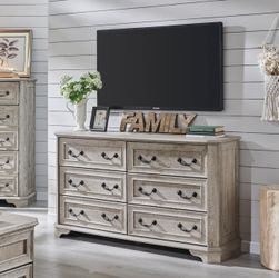 Farmhouse 6 Drawers Dresser for Bedroom, 54" Wide Wood Rustic Chest of Drawers with Natural Texture, Vintage Design, Storage Dressers Organizer for Be$125Rowland Heights, CA
