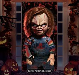 Halloween Banner, Classic Horror Chucky Door Cover, Scary Party Decoration, Door Photo Backdrop, Festive Occasion Wall Hanging Decor$12Upland, CA