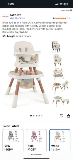 16 in 1 High Chair, Convertible Baby Highchair for Babies and Toddlers with Activity Center, Booster Seat, Building Block Table, Toddler Chair with Sa$65Montclair, CA