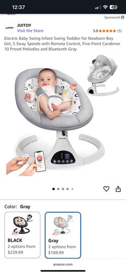 Electric Baby Swing Infant Swing Toddler for Newborn Boy Girl, 5 Sway Speeds with Remote Control, Five-Point Carabiner 10 Preset Melodies and Bluetoot$40Montclair, CA