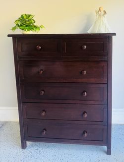 A tall, large, dark brown dresser with six drawers.$75Lawrenceville, GA