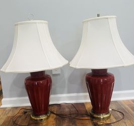 A pair of vintage table lamps with ceramic bases in the "sang de bœuf" (oxblood) glaze technique.$50Lawrenceville, GA