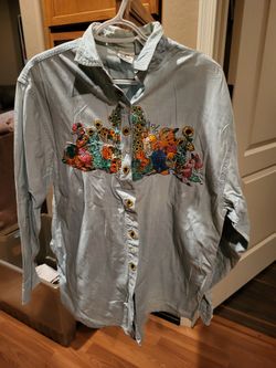 The Quaker Factory Large Green Snowmen Christmas Shirt$20Mesa, AZ