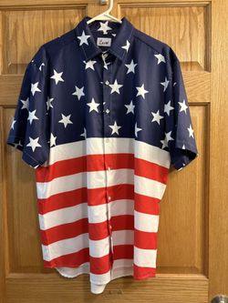 Euow American USA Flag Button Up Short Sleeve Hawaiian Shirt Men’s - Large L $16Hoopeston, IL