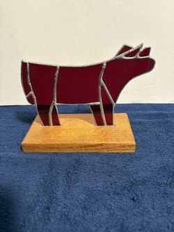 6” Homemade Red Tall Stained Glass Cow Cattle Simmental Decor Accent Award Farm$18Hoopeston, IL
