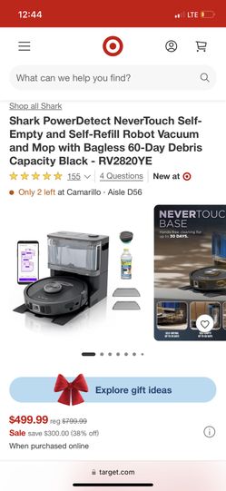 Shark PowerDetect NeverTouch Self-Empty and Self-Refill Robot Vacuum $270Brea, CA