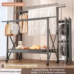 Heavy Duty Foldable Clothes Drying Rack with Wheels, Adjustable Height & Length Portable Laundry Garment Rack$70Rosemead, CA