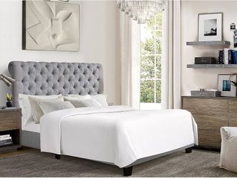 Rosevera Atherine Upholstered Bed Frame/Fabric Upholstered Bed Frame with Adjustable Headboard/Chesterfield-Styled/Rolled Head/Wood Slat Support/Easy $110El Monte, CA