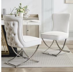 Luxury Velvet Dining Chairs, Tufted Upholstered Armless Accent Chairs with Silver Metal X-Legs, Modern Glam Dining Room Chair Set of 2, Beige$160Glendale, AZ