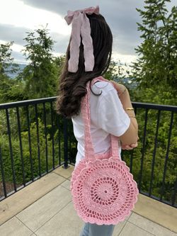 Handmade Pink Crochet Round Shoulder Bag — Lightweight Summer Style🩷🌸$20Issaquah, WA