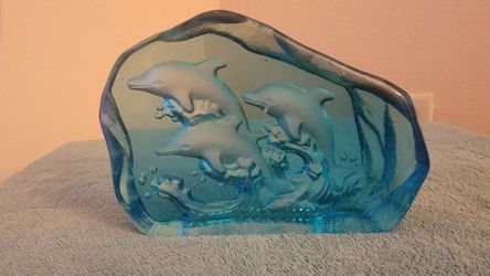 Sold🌺 Blue Dolphin Etched Sea Glass Paper Weight 🌺$5San Clemente, CA