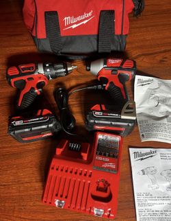 MILWAUKEE COMBO KIT M18 18V Lithium-Ion Cordless Drill Driver/Impact Driver Combo Kit (2-Tool) W/ Two 1.5Ah Batteries, Charger Tool$170Montclair, CA