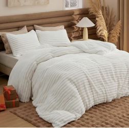Fluffy Comforter Set Queen - Super Soft Faux Fur Bed Set Cream White, Warm Plush Fleece Winter Bedding, 3 Pieces, 1 Shaggy Fuzzy All Seasons Queen Siz$35El Monte, CA