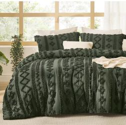 Tufted Boho Comforter Set Oversized King - Olive Green Boho Bed Set, GentleSoft™ 3 Pieces Farmhouse Shabby Chic Embroidery Bedding, Gifts for Woman, S$40El Monte, CA
