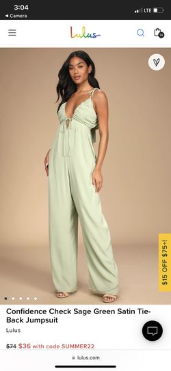 Brand New Sage Confidence Check Sage Green Satin Tie Back Jumpsuit $40La Mesa, CA
