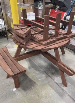 Assembled New Wood Picnic Table for 10-12 People Round Top w/ Umbrella Hole 4 Built-in Curved Benche$195La Mirada, CA