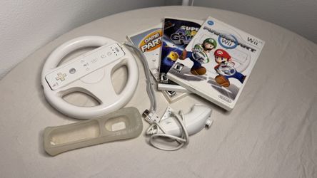 Nintendo Wii Bundle — Steering Wheel + Nunchuk + 3 Games — Great Condition$50Sumner, WA
