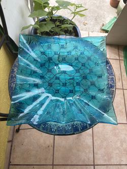 Monaco Blue Wavy Glass With Decorative Leaves $40Medley, FL