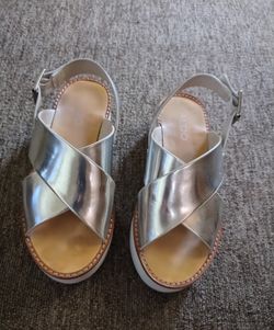 ALDO Women's Shoes/Sandals Silver Metallic Cross Strap Sling Back 1.5 Platform Size 6$12Bonita, CA