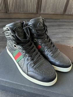 Gucci GG Monogram Black Leather Hi High Tops Trainers Sneakers Men's UK 7G US 7.5$150Miami, FL